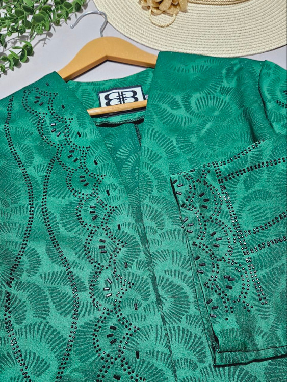 🔷️مانتوی ژاکارد مجلسی زنانه با طراحی نگینکوب و تنخور شیک، انتخابی لوکس برای مهمانیها و مراسم رسمی است.
