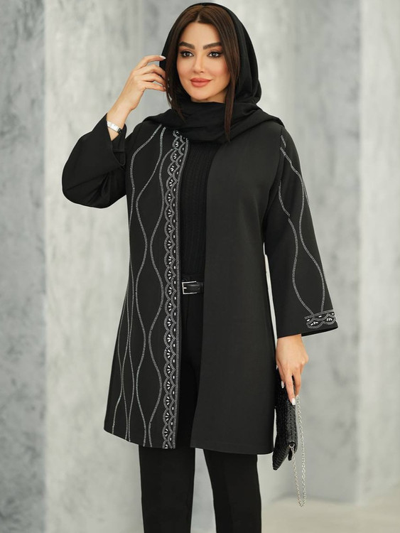 مانتو ژاکارد نگینکوب با طراحی خاص و پوشش کامل، برای خانمهایی که به جزئیات اهمیت میدن طراحی شده.