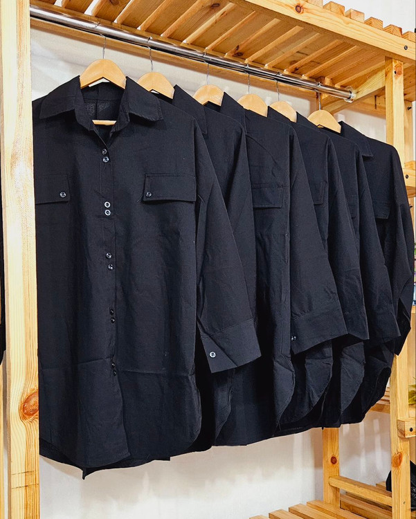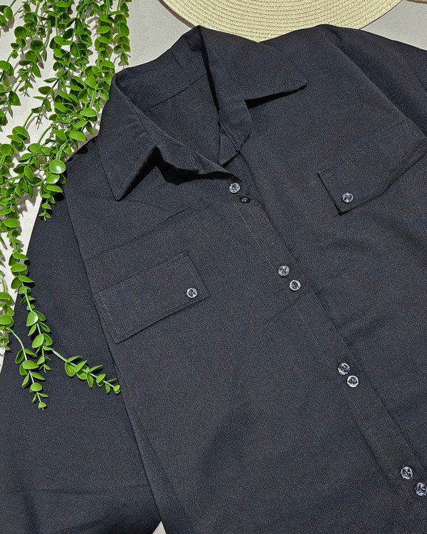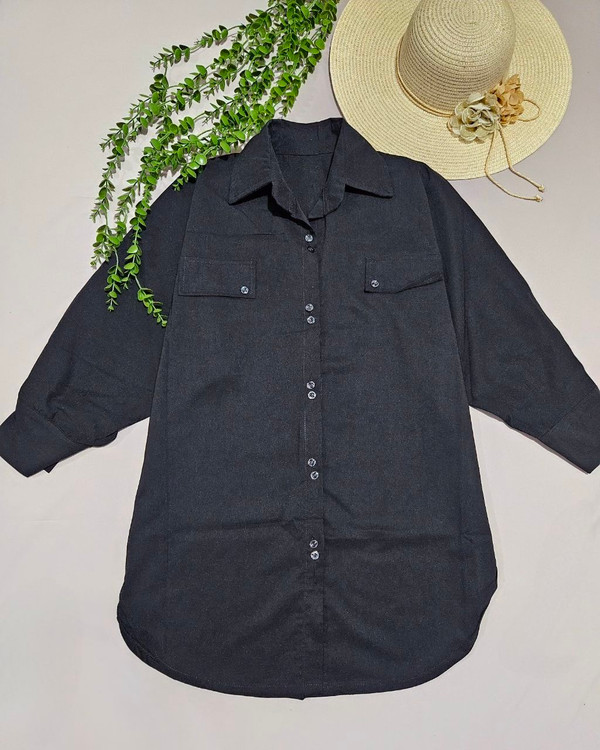 شومیز مانتو دو دکمه زنانه مدل کیمونو مشکی