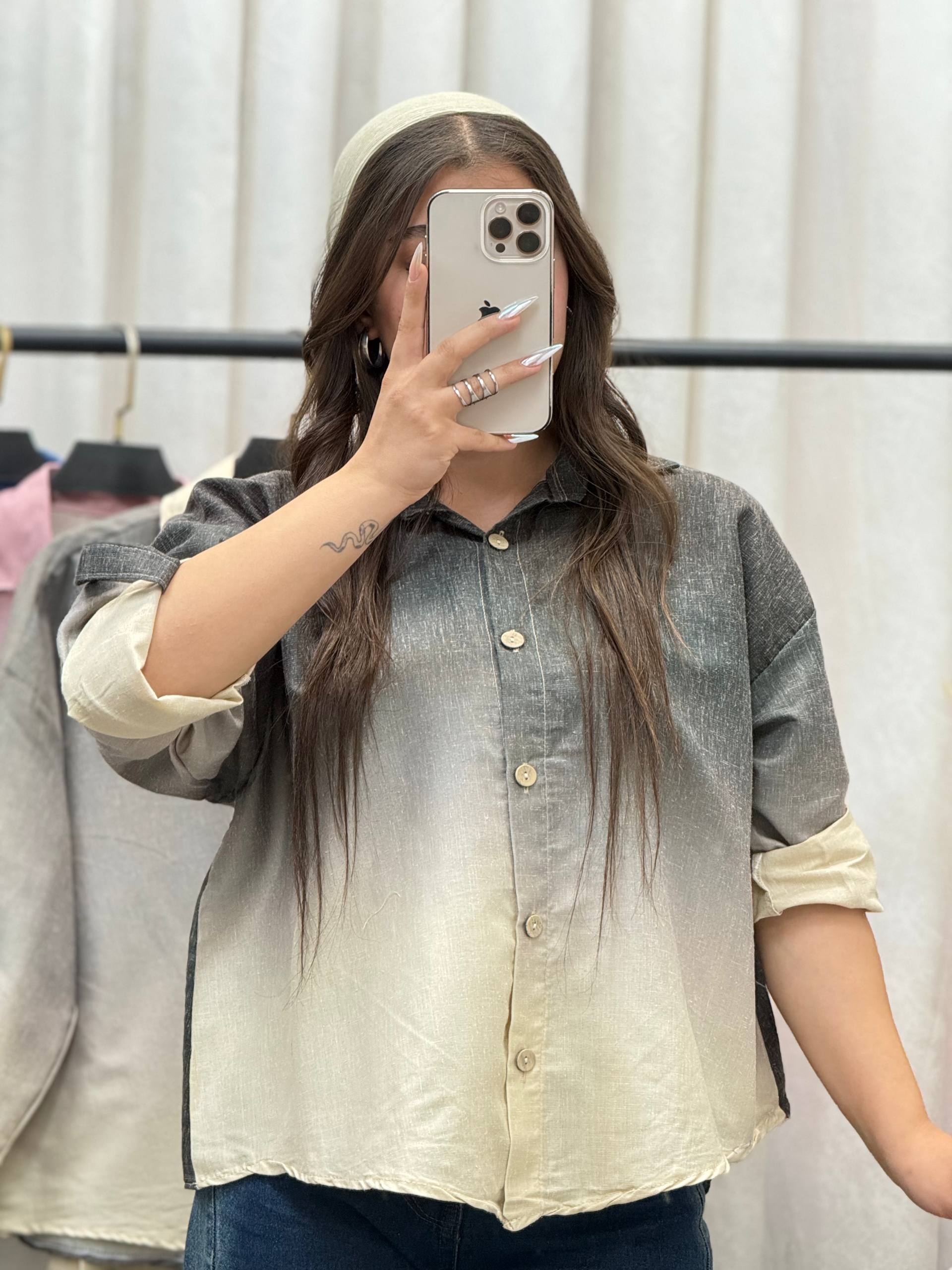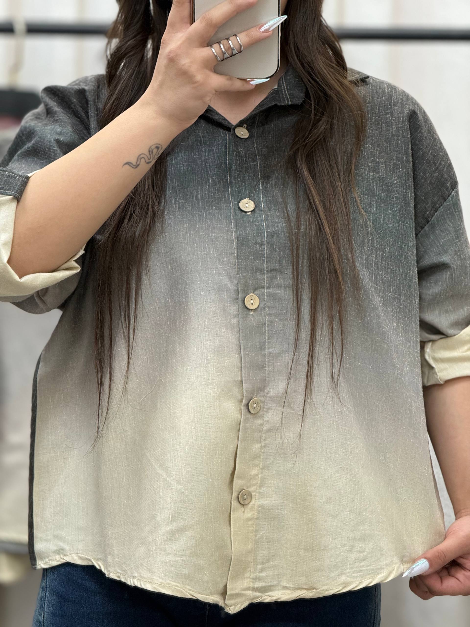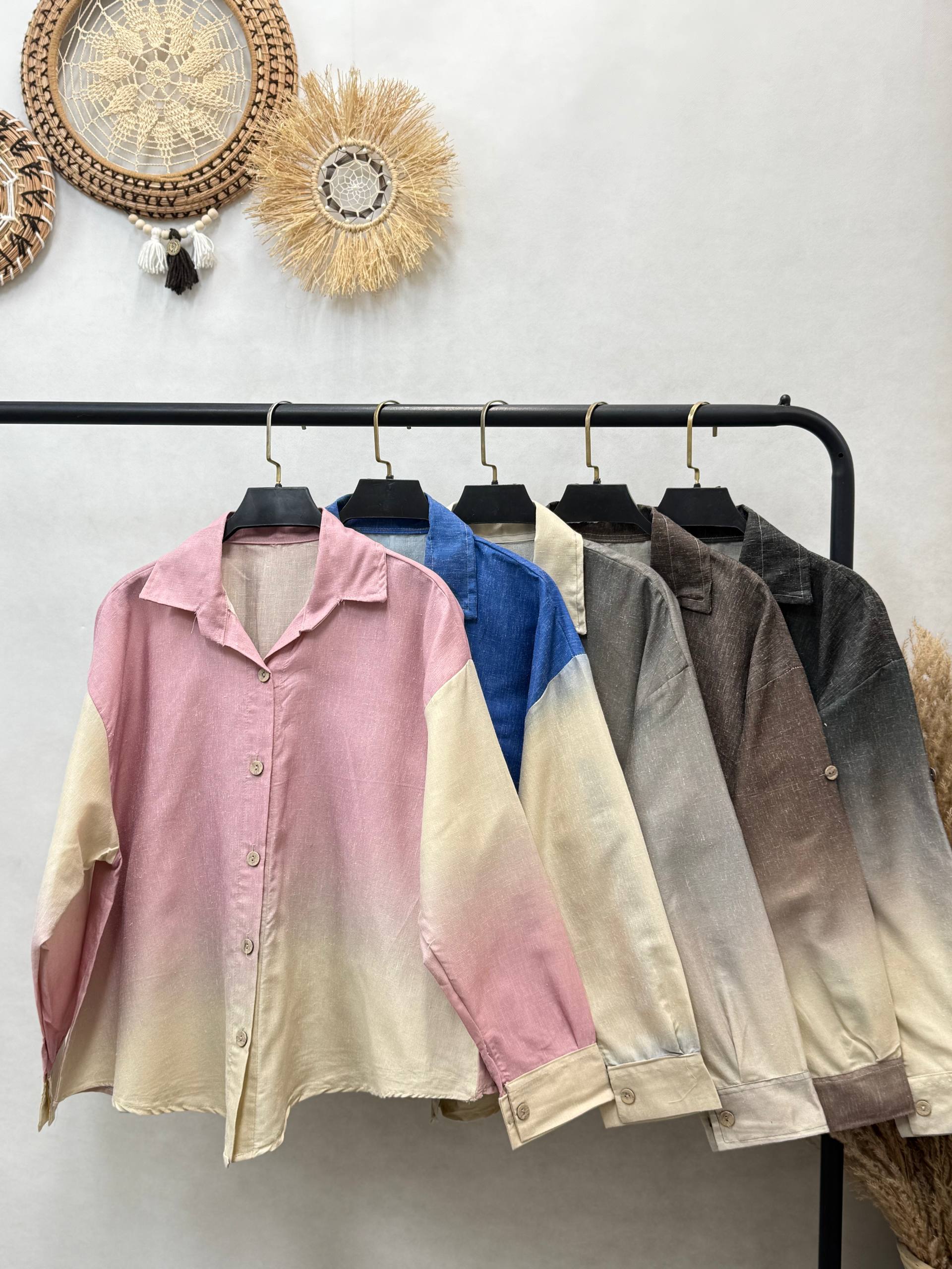 شومیز باکسی رنگی جلو دکمه زنانه
